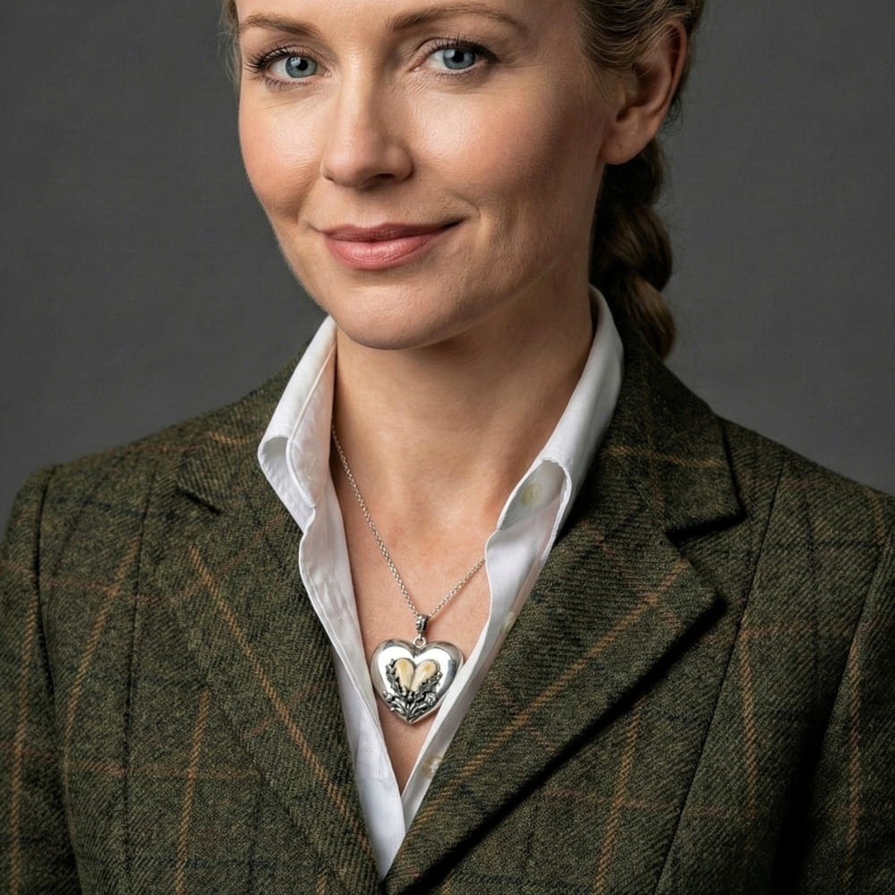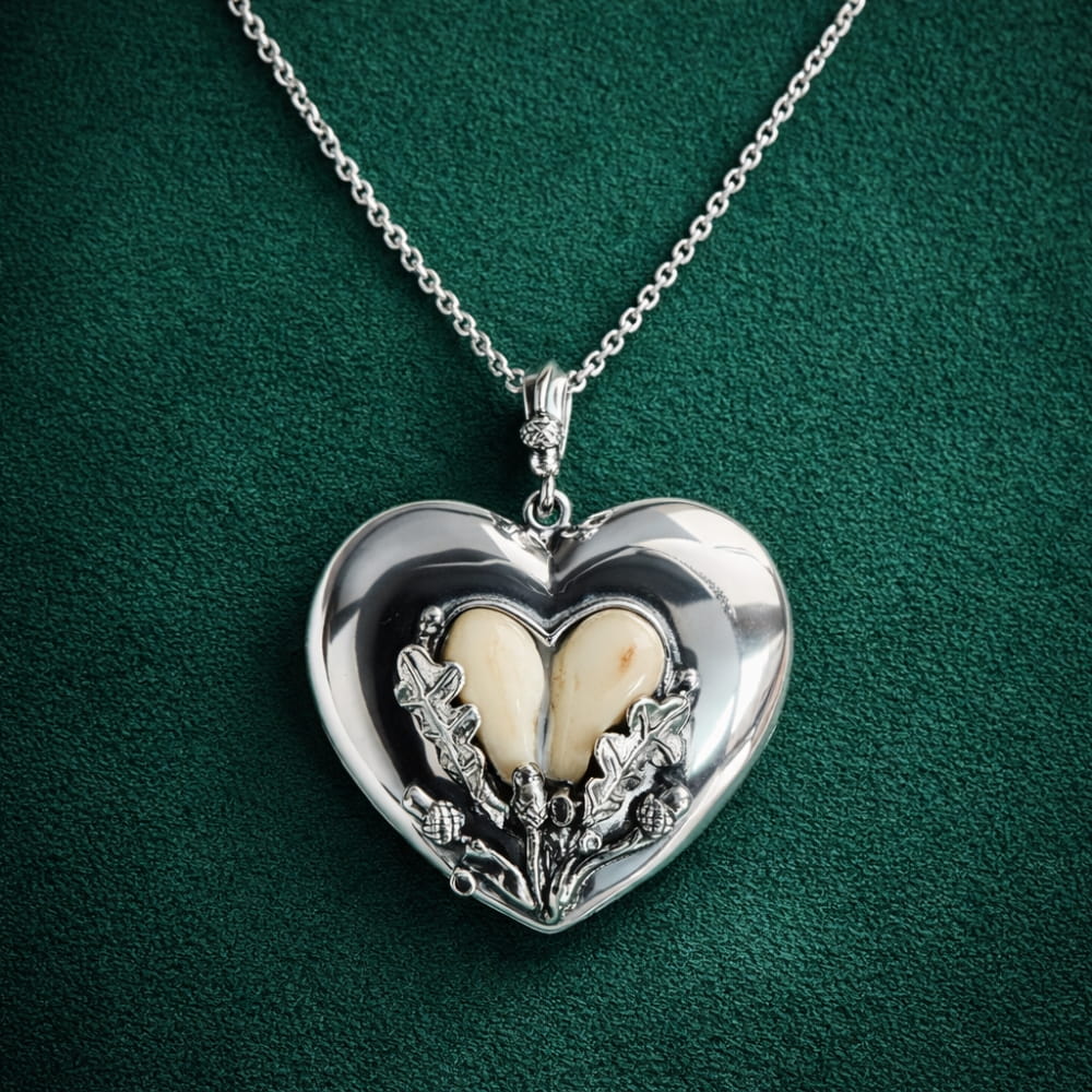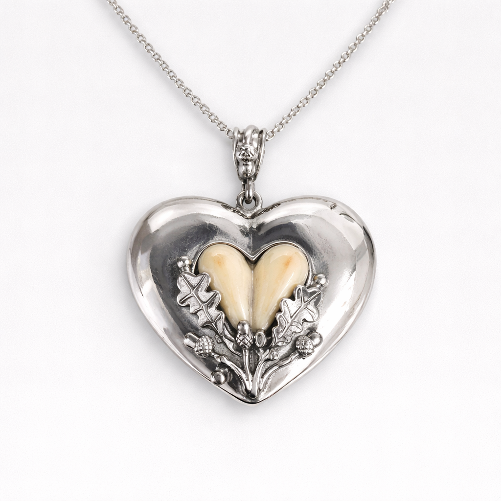 Naszyjnik DUŻE SERCE to jeden z najbardziej wyrazistych i symbolicznych projektów marki FOREST TROPHY – ręcznie tworzona biżuteria myśliwska, która łączy rzemiosło jubilerskie z autentyczną tradycją łowiecką. Jego centralnym elementem jest serce uformowane z pary naturalnych grandli byka, cenionego trofeum, od pokoleń symbolizującego siłę, dojrzałość oraz szacunek do natury i lasu.