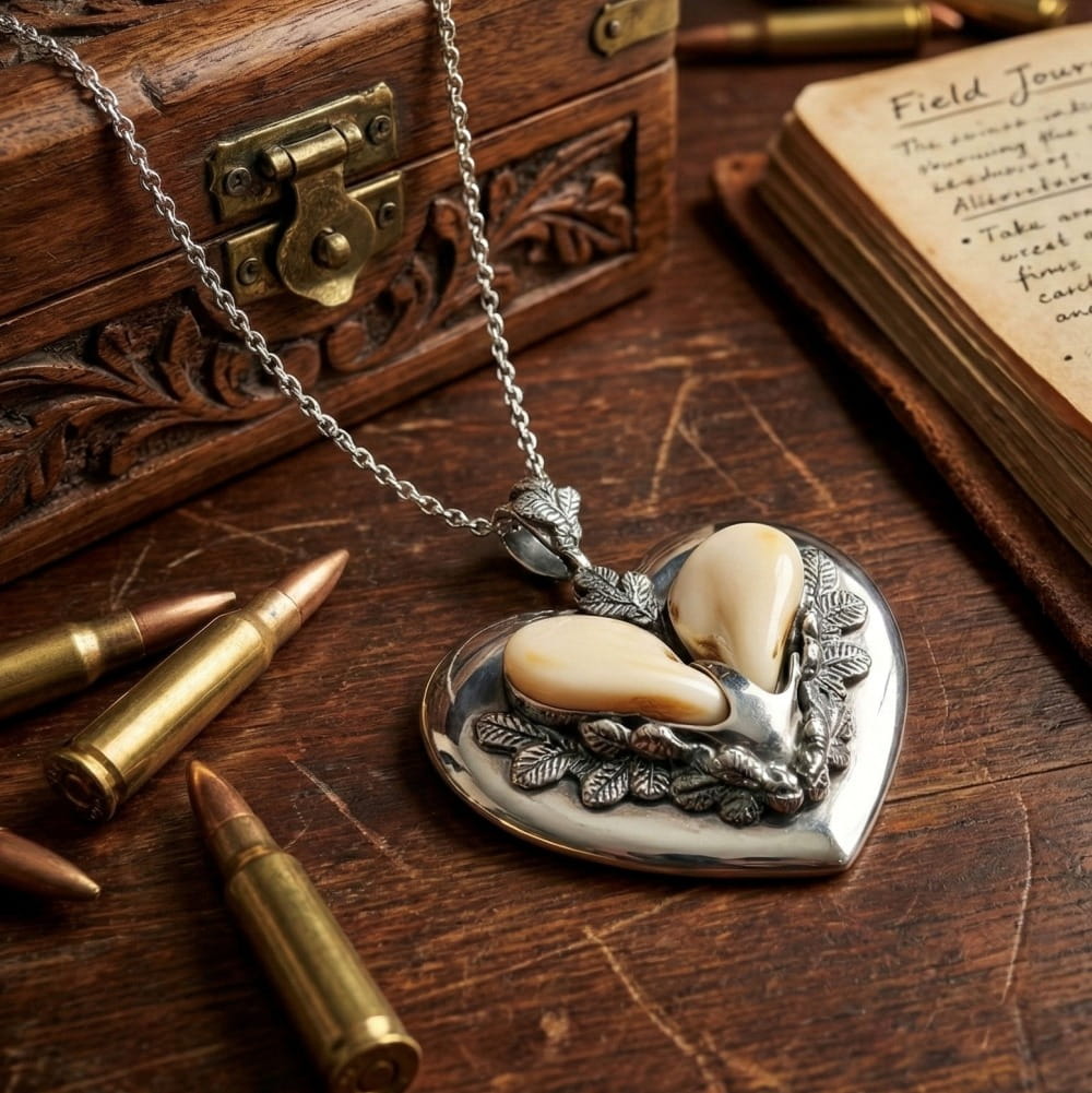 Naszyjnik SERCE LASU to wyjątkowa biżuteria myśliwska, która łączy naturalne grandle jelenia, ręczne wykonanie i głęboką symbolikę natury. Ten srebrny naszyjnik z grandlami nie jest jedynie ozdobą — to symbol łowiectwa, więzi z lasem i szacunku do cyklu życia.