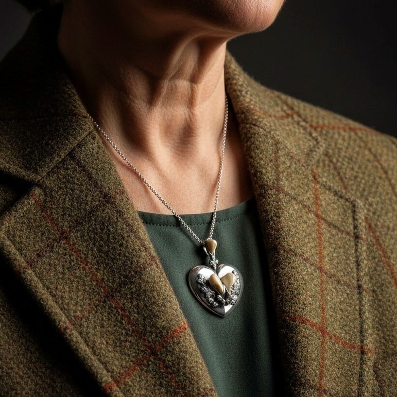 Serce Ostoi to unikatowy naszyjnik myśliwski wykonany ze srebra i naturalnych grandli, który łączy rzemiosło jubilerskie z symboliką łowiecką. Forma serca nawiązuje do pojęcia ostoi – miejsca spokoju, bezpieczeństwa i harmonii z naturą. To biżuteria dla osób związanych z łowiectwem, lasem i tradycją, a jednocześnie elegancki talizman noszony blisko serca.